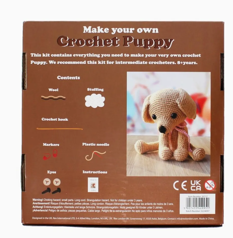 Rex London Make Your Own Crochet - Puppy: Stitch by stitch, create your own cuddly companion! Embrace the joy of handmade crafting with the Rex London Make Your Own Crochet – Puppy kit!