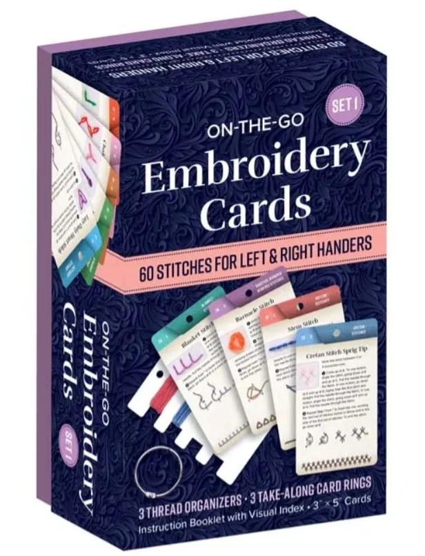 Stitch anywhere with On-the-Go Embroidery Cards Set 1! This portable set includes 60 essential stitches with instructions for right and left-handed stitchers, each on a handy card, thoughtfully colour-coded by stitch type for easy use. The box includes: